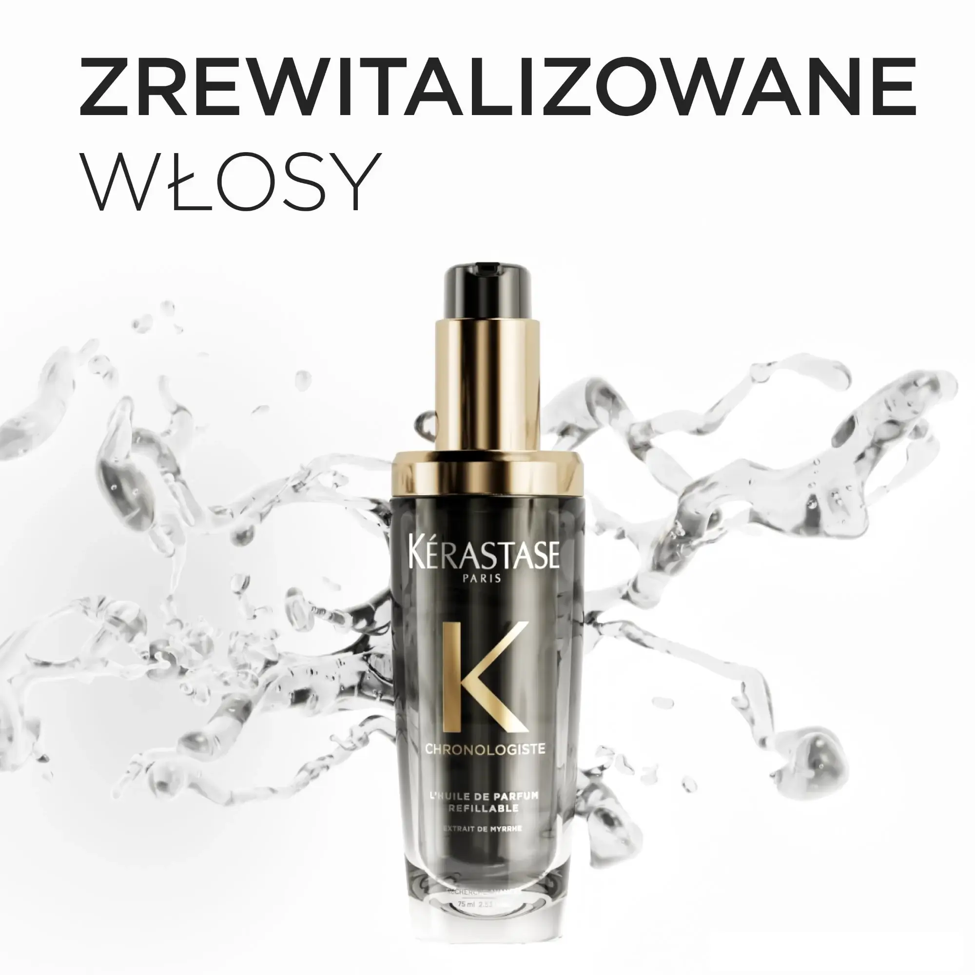 Butelka Kérastase Chronologiste Olejku do włosów została zaprojektowana z myślą o długotrwałym użytkowaniu. Po zużyciu produktu możesz dokupić sam wymienny wkład 75 ml, co pozwala zadbać zarówno o włosy, jak i o planetę.