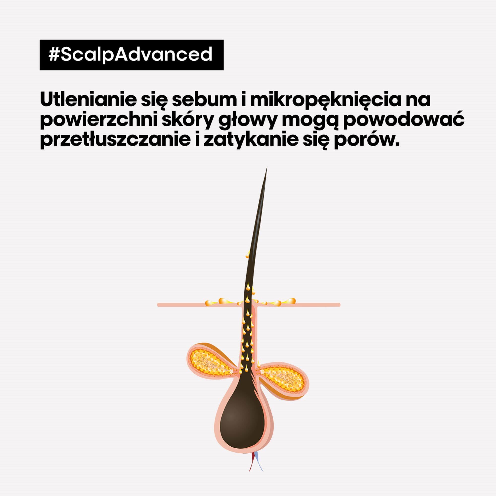 Najlepiej wybrać formułę oczyszczającą z kwasami AHA, która reguluje wydzielanie sebum bez przesuszania. L'Oréal Scalp Advanced Anti-Oiliness już po pierwszym użyciu ogranicza sebum o 78% i pozostawia włosy świeże dłużej.