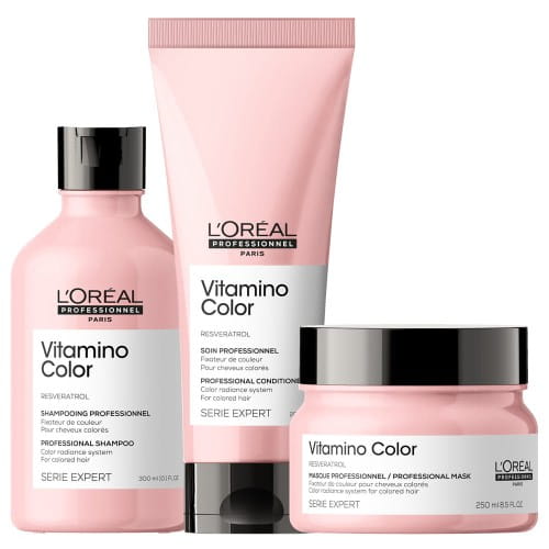 Zestaw pielęgnacji do włosów koloryzowanych i rozjaśnianych L'Oréal Professionnel Vitamino Color – szampon 300 ml, maska 250 ml, odżywka 200 ml