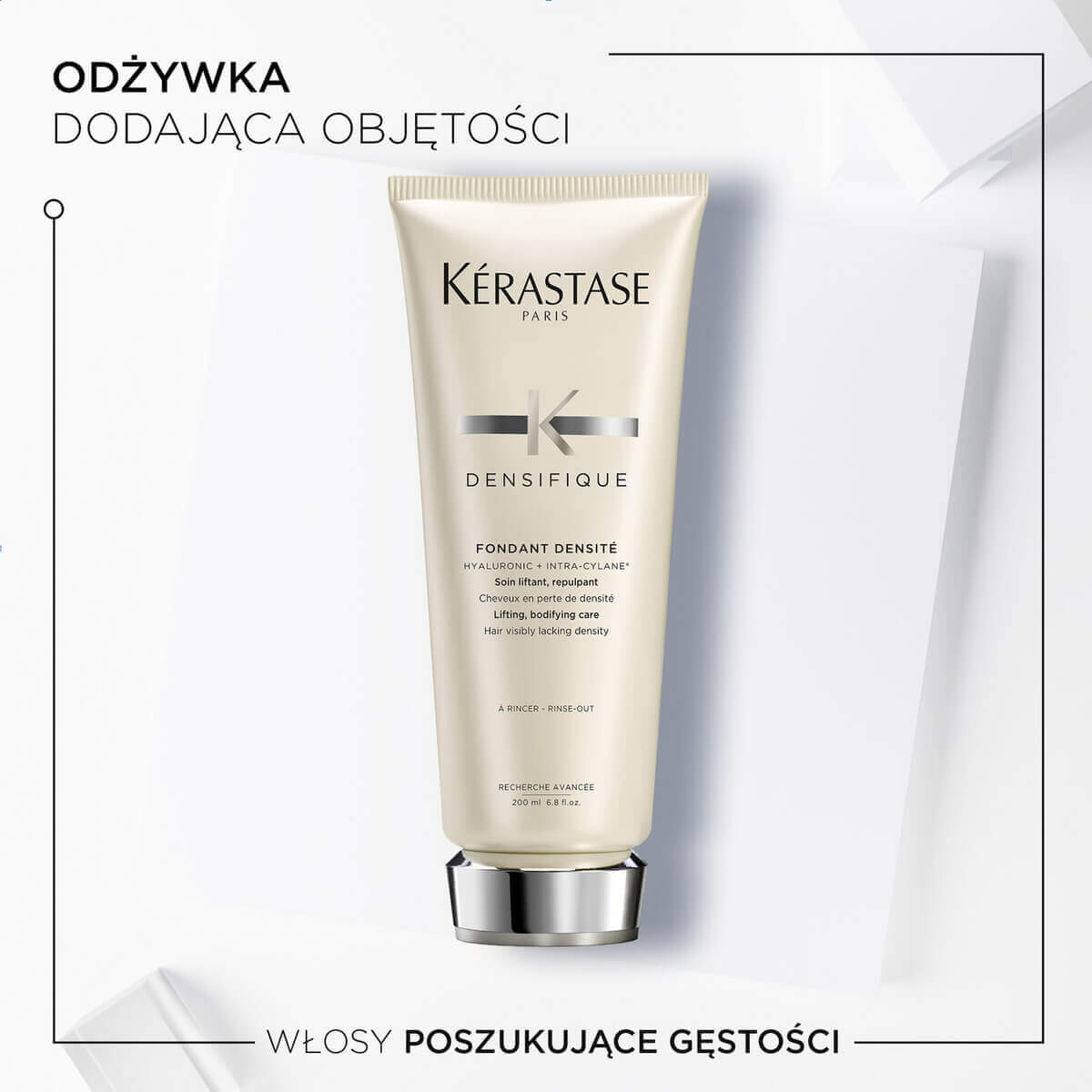 Masz cienkie włosy pozbawione objętości, które szybko tracą kształt fryzury? Kérastase Densifique Fondant Densité to lekki balsam odżywczy, który wzmacnia włosy, poprawia ich teksturę i widocznie zwiększa gęstość. Dzięki formule z kwasem hialuronowym i Intra-Cylane® włosy stają się mocniejsze, sprężyste i pełniejsze, bez efektu obciążenia.