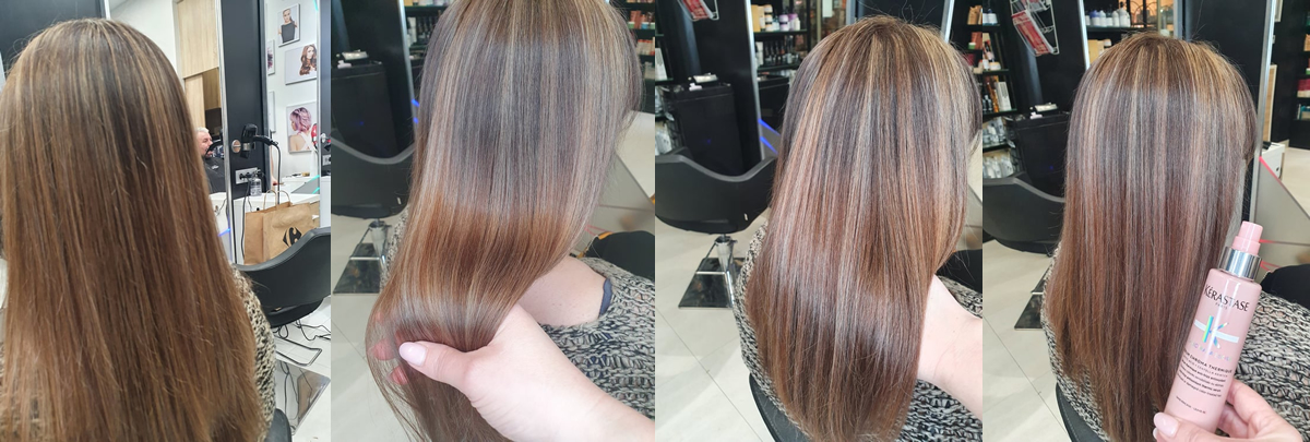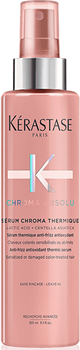 Kolejnym użytym produktem do stylizacji był Kérastase Serum Chroma Absolu Termique. To termiczne serum przeciw puszeniu się włosów. Posiada mleczną konsystencję o właściwościach przeciwutleniających. Zabezpiecza włosy przed czynnikami zewnętrznymi takimi jak: promienie UV, wilgoć czy stres oksydacyjny.