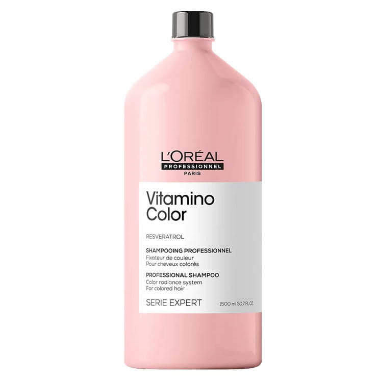 Szampon L'Oréal Professionnel Vitamino Color 1500 ml przeznaczony jest do włosów farbowanych i rozjaśnianych, wymagających ochrony koloru i blasku. Dla mniejszej pojemności wybierz 500 ml z pompką lub 300 ml.