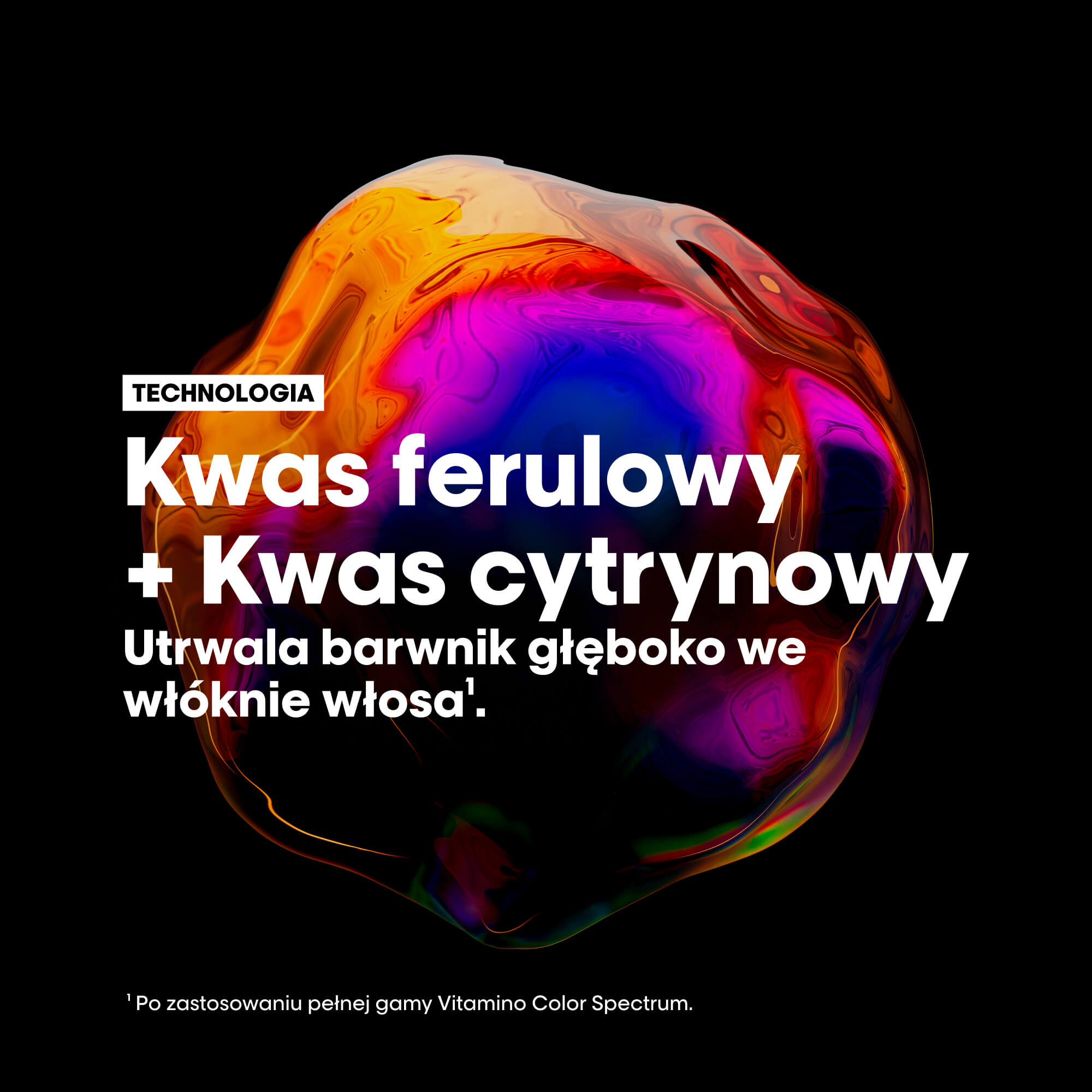 Kluczem jest duet kwasu ferulowego i kwasu cytrynowego. Kwas ferulowy pomaga neutralizować wolne rodniki i wspiera stabilność pigmentów, a kwas cytrynowy wygładza łuskę włosa, dzięki czemu światło odbija się równomiernie, podkreślając połysk i nasycenie koloru. Polimery pielęgnujące ułatwiają rozczesywanie bez obciążenia.
