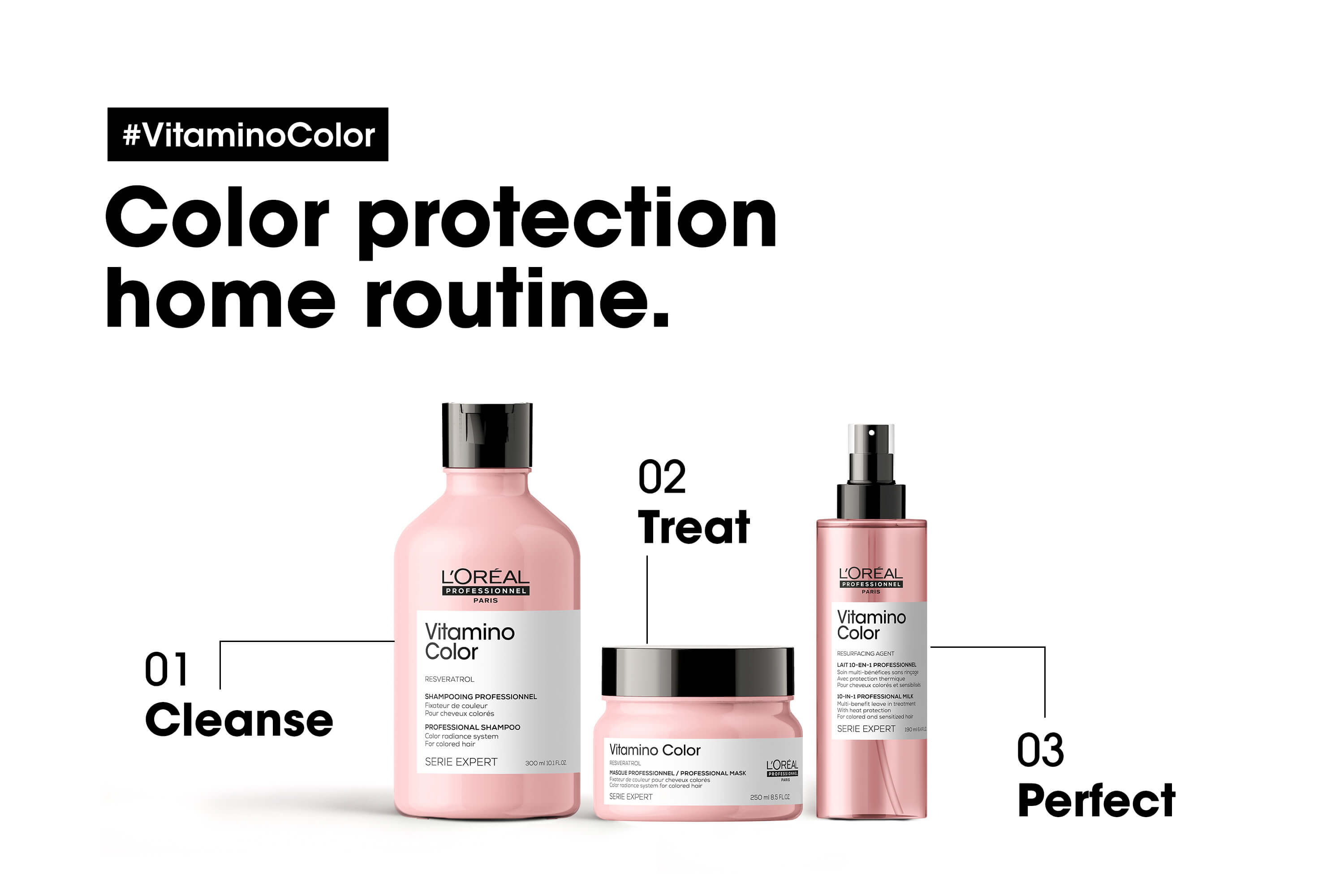 Dzięki resweratrolowi szampon wspiera ochronę pigmentu nawet do 8 tygodni, a pantenol wygładza włosy i nadaje im blasku. Rutynę uzupełnij maską 500 ml i sprayem 10w1.