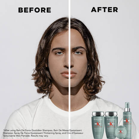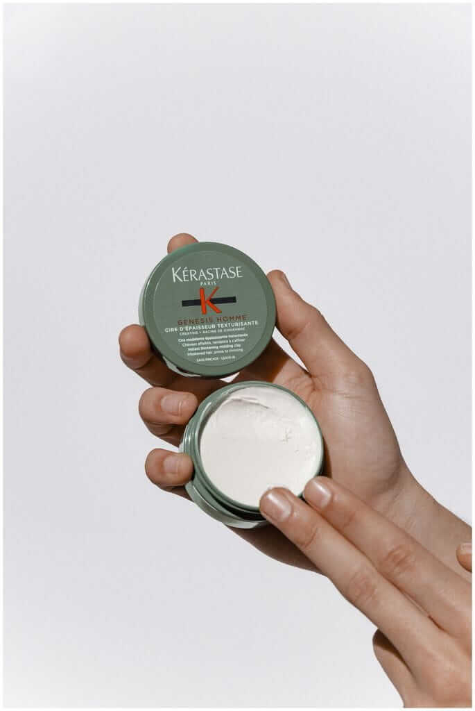 Cienkie, przerzedzające się włosy i brak trwałej tekstury? Kérastase Genesis Homme Cire D'Épaisseur Texturisante to wosk modelujący, który od razu pogrubia pasma, dodaje objętości i zapewnia matowe, trwałe wykończenie bez sklejania.