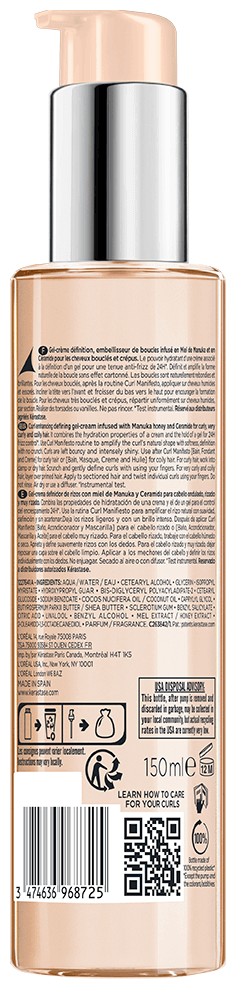 | Sposób użycia | Nałożyć na umyte i osuszone ręcznikiem włosy. Nie spłukiwać. Stylizować jak zwykle. Dla najlepszych efektów używać w połączeniu z innymi produktami z gamy Curl Manifesto. |